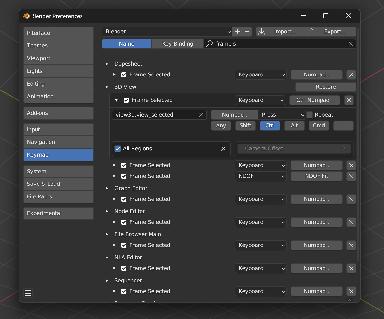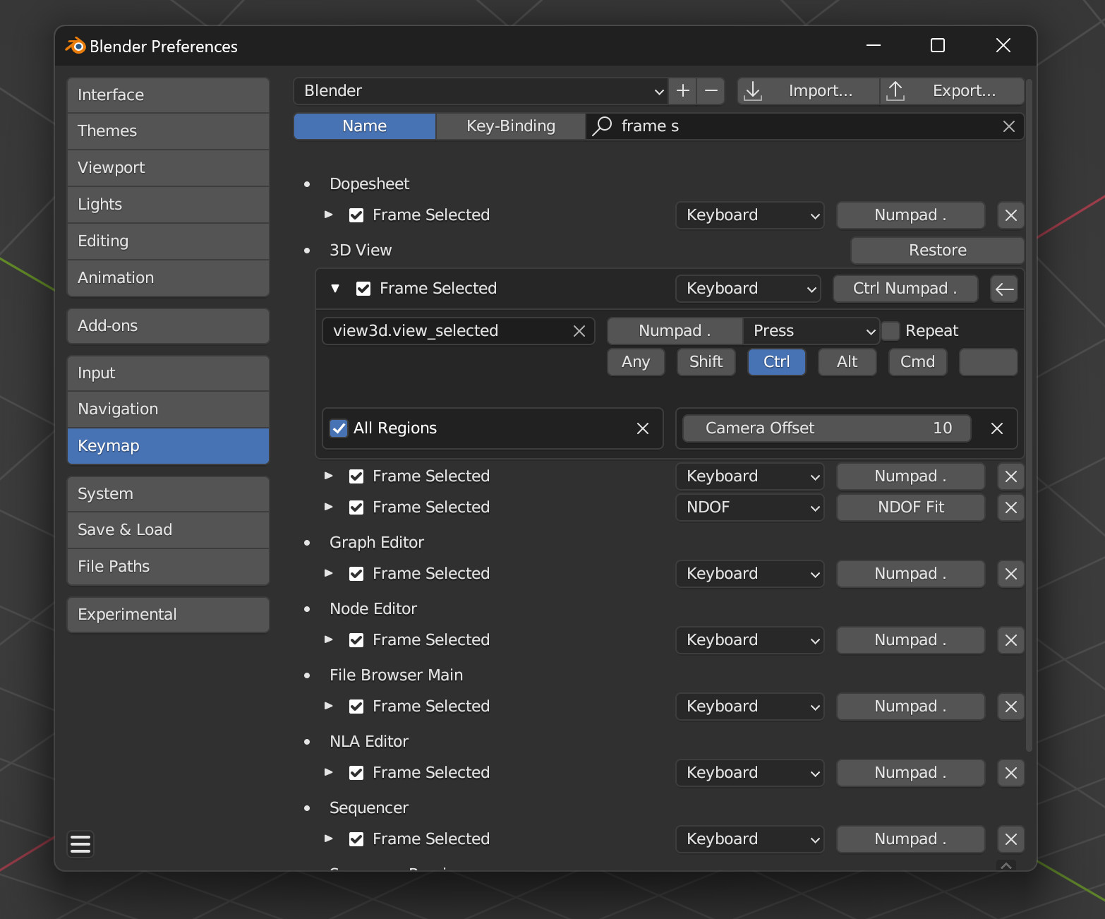 Frame Selected default, and a small offset. Can go way out there to the edge of default clipping if needed