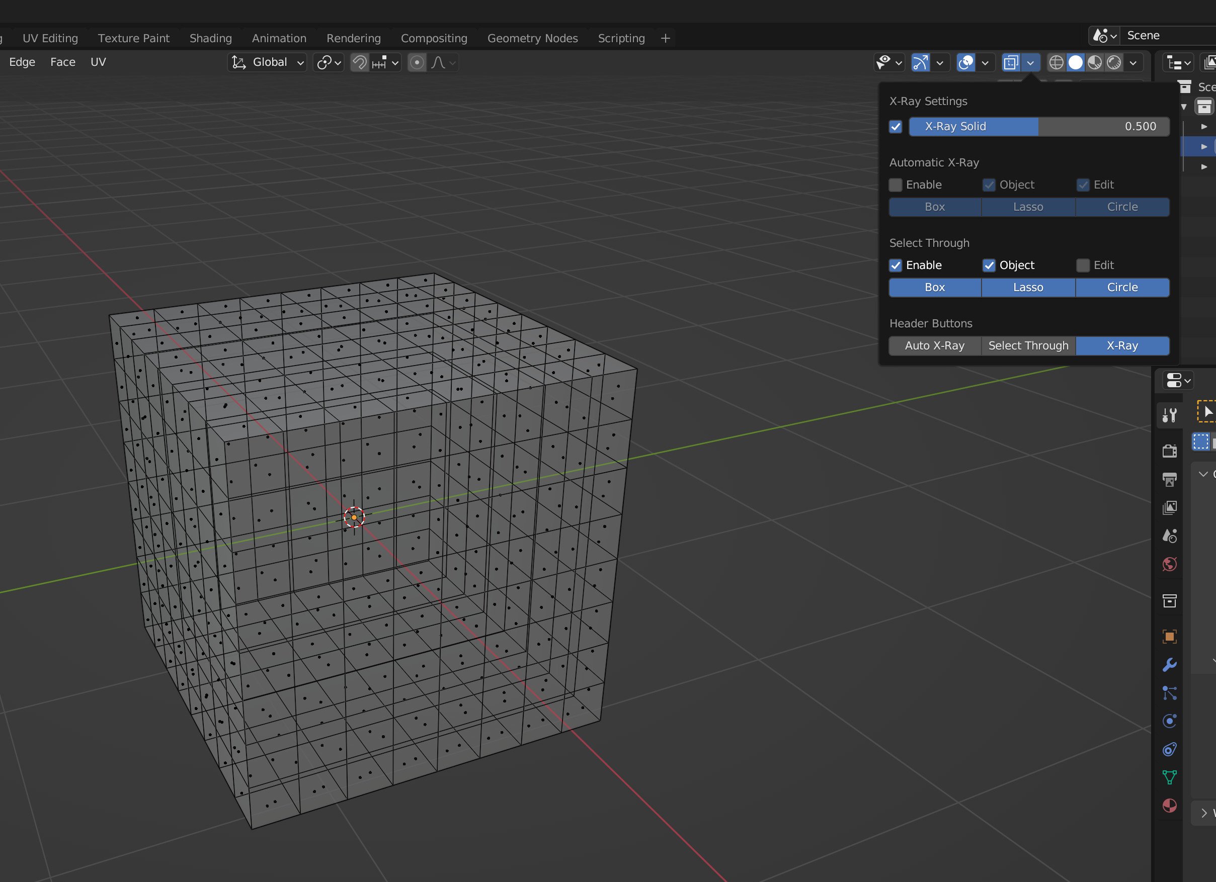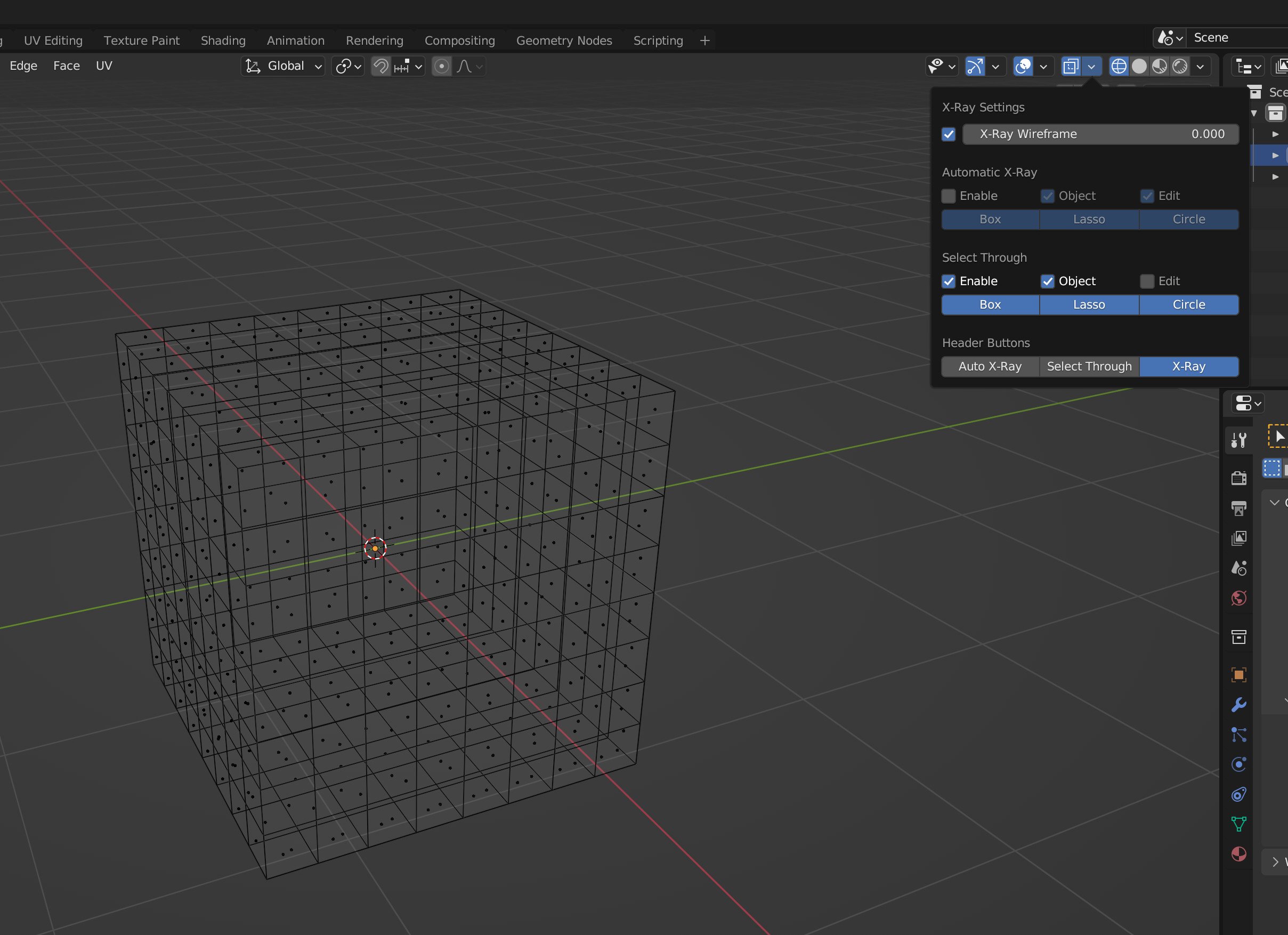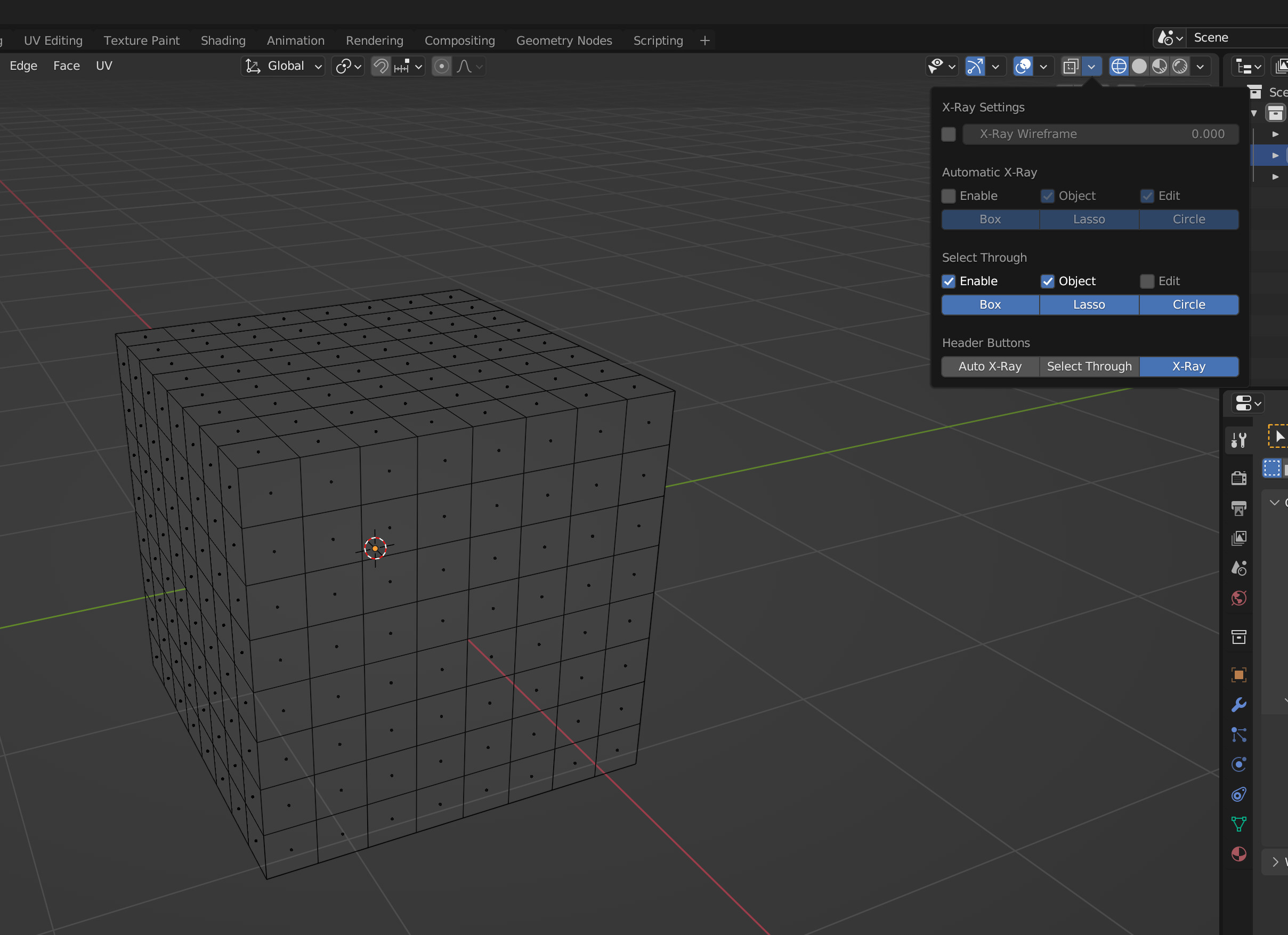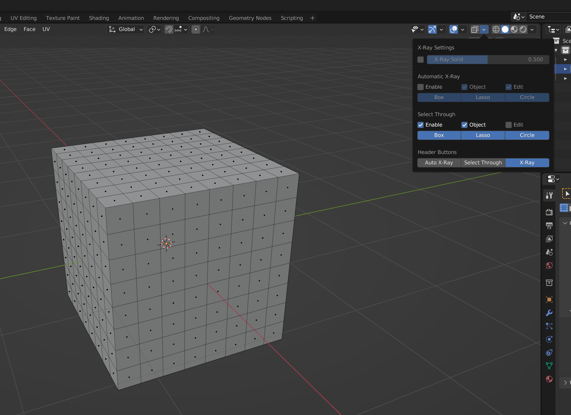 X-Ray, Select Through, and Automatic X-Ray buttons in the header