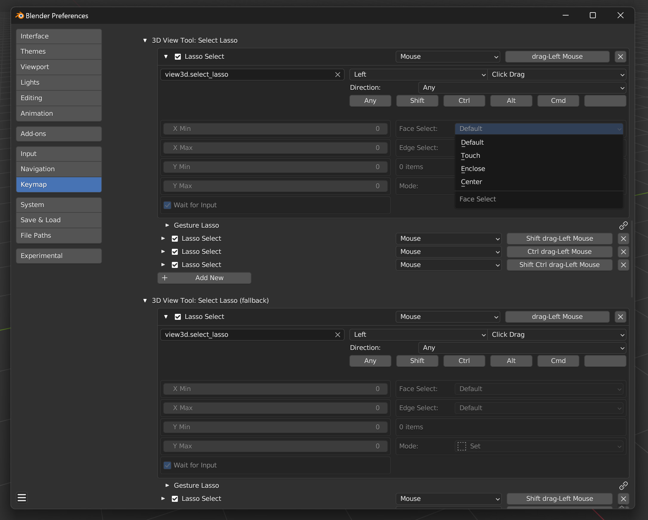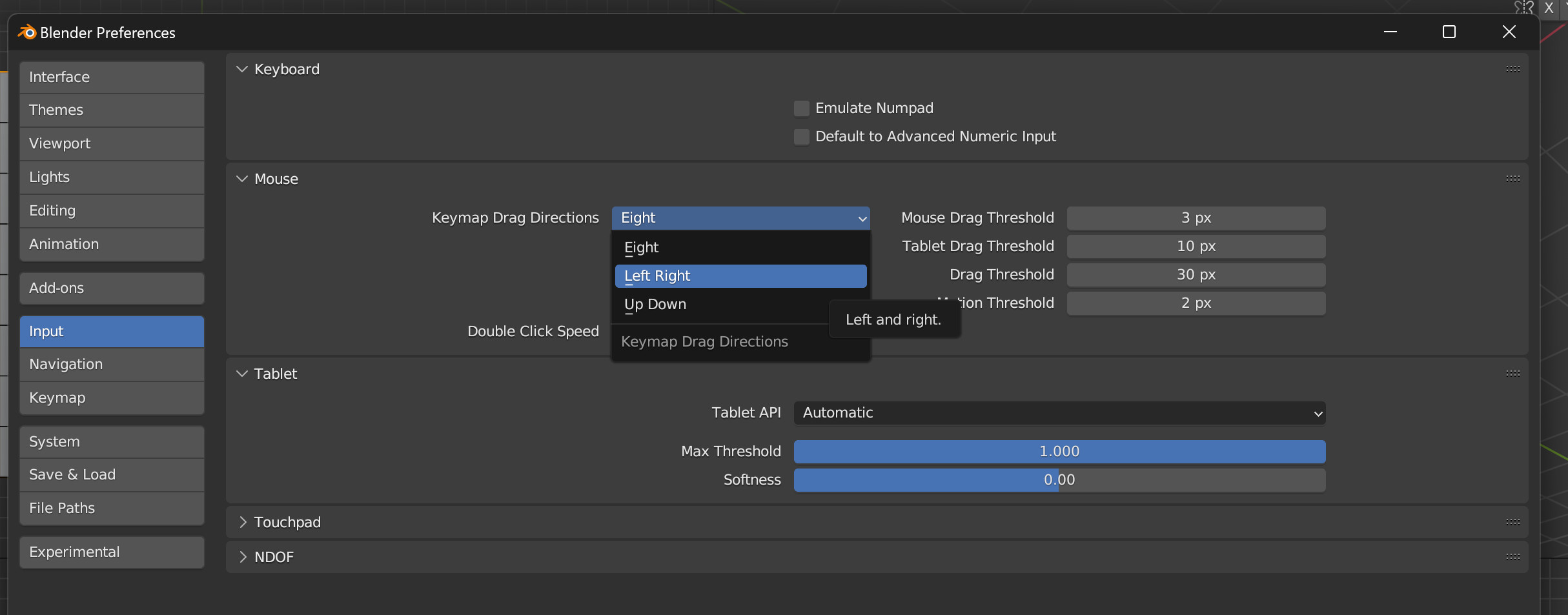 Blender let's you assign a direction to click-drag in the Keymap. There are 8 of them, which is nice, but it's confusing and inaccurate if all you need are 2.