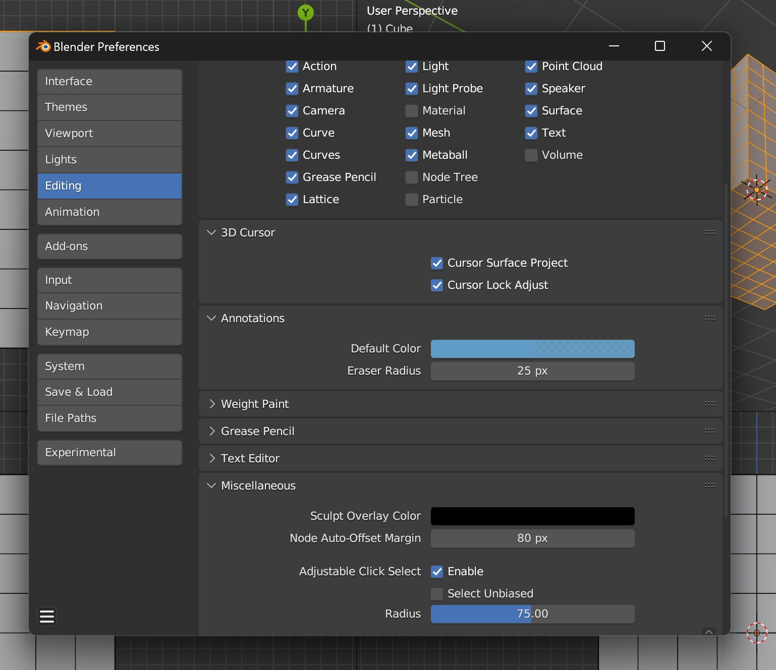 Adjustable Click Select radius will be at 0 instead of 75 like it should be if you already have a startup file for the same version of Blender