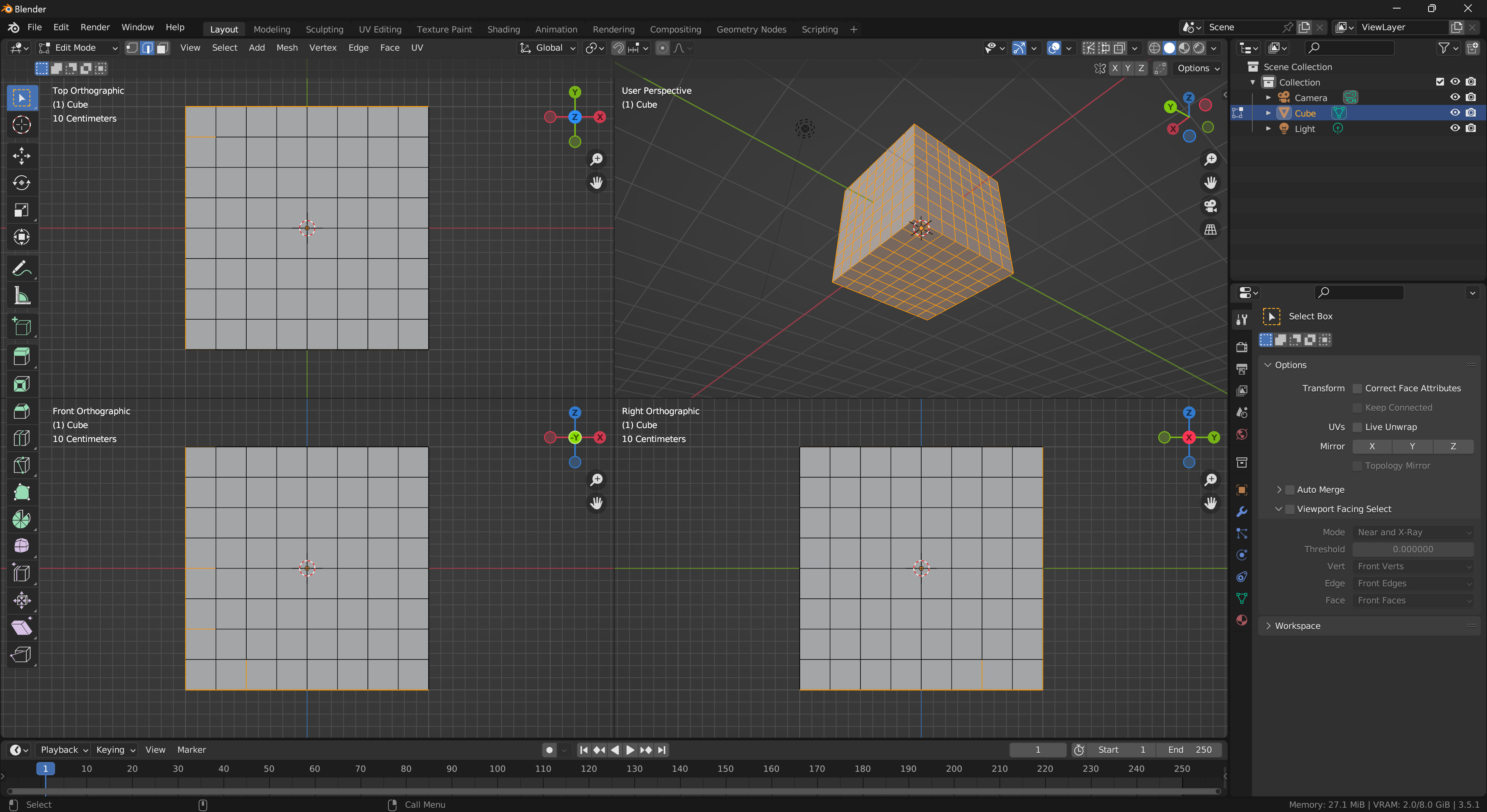 This build is only possible because of the knowledge and experience shared by the community. I want mention some people that helped me figure things out like Chris Blackbourne, LazyDodo, Harley and Campbell. Everyone on devtalk and in the chat, thank you. Most of all, I want to thank kio. Select Through, Facedot visibility, and Touch select faces in X-Ray are from the work he did. Some of it is basically untouched, and I learned a lot by updating it and changing how it works.